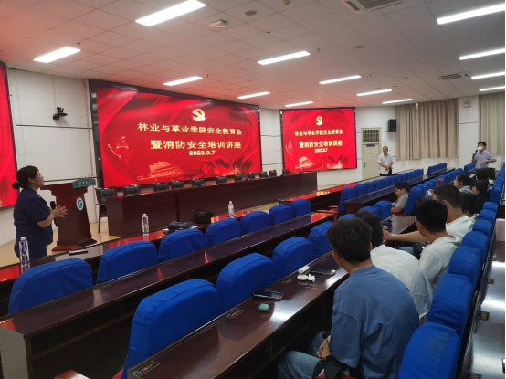 在文荟楼报告厅分别组织了“建林说安全”实验室安全和消防安全培训会,同步参加LAB-HSE线上公开课“实验室开学第一课:危化品安全管理及消防安全知识”等全国培训。林草学院全体师生参加。