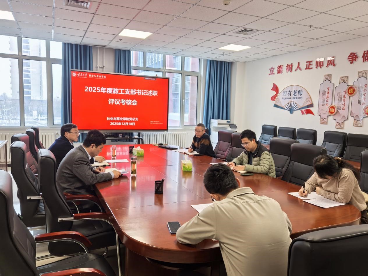 2025年度教工党支部书记述职评议会在朔方校区新农科大楼248会议室举行。学院党总支委员及3位教工党支部书记参加会议。党总支书记贺海明主持会议。