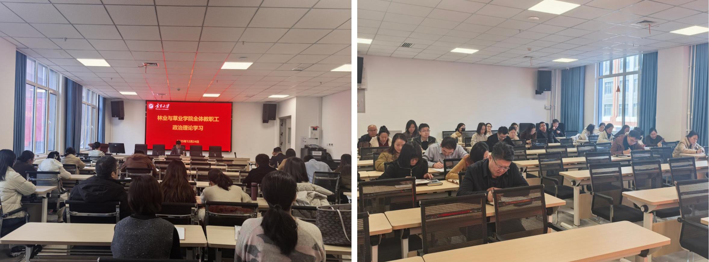 2025年12月24日,麻豆导航 于新农科大楼223会议室召开全体教职工政治理论学习研讨会。全体教职工参加学习,学院党总支书记贺海明主持会议。
