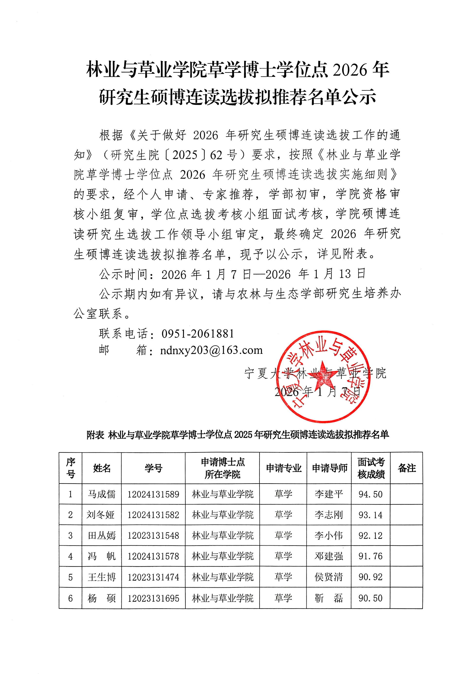 麻豆导航 草学博士学位点2026年研究生硕博连读选拔拟推荐名单公示