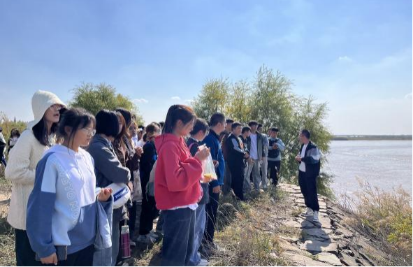 第二站,仁存渡护岸林场。到达林场后,林场工作人员向给同学们介绍了林场的种质资源情况、基础设施建设、杨树育种基地现况。随后带领同学们参观了黄河河岸防护林、杨树种质资源基地,带队教师也为同学们生动地讲解了林木育种等相关专业知识,让同学们在了解宁夏黄河河岸防护林建设情况的同时对自己所学的专业有了初步的感性认知。