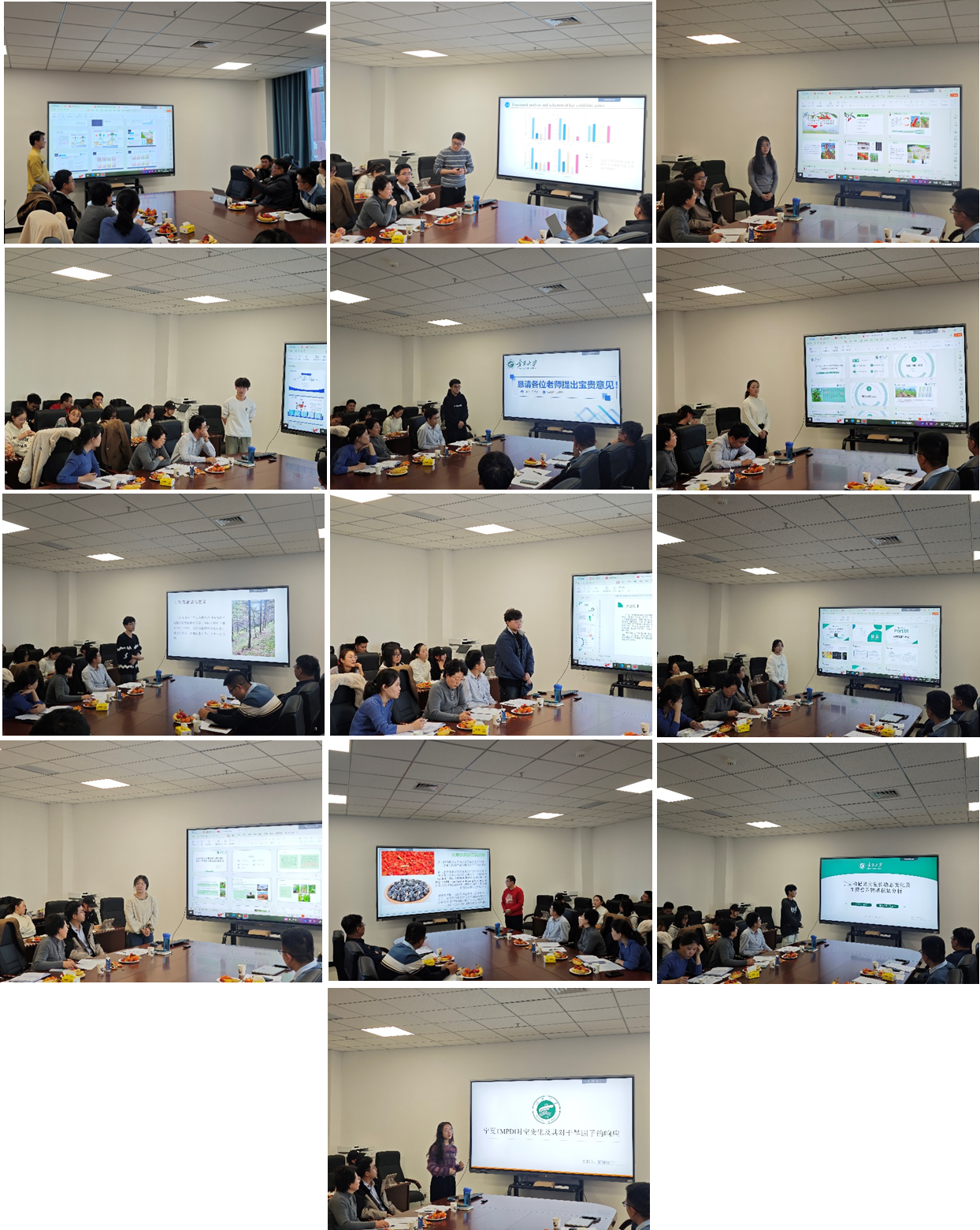 随后,团队研究生张磊、李敬祖、李思思、戚传鑫、杨改儿等13名研究生也依次进行了研究成果分享报告,内容涵盖枸杞育种、灵武长枣果实品质提升、森林植被恢复等多个方面的研究内容,参会师生就每个报告内容进行深入交流和研讨。同学们深刻感受到了学术收获和启发。