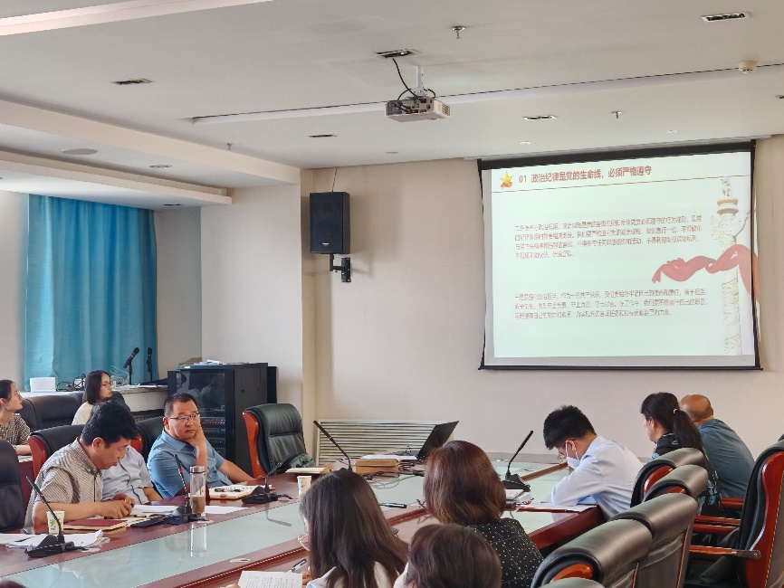 党总支书记贺海明主持,院长马红彬、党总支副书记田佳、副院长伏兵哲、以及全体教师参加了此次会议。会上,贺海明书记作了题为“严明党的纪律,做新时代合格党员”的报告,带领全体与会人员深入学习了政治纪律、组织纪律、廉洁自律、群众纪律、工作纪律和生活纪律的具体内容和重要性。