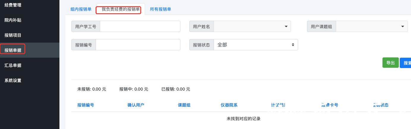 6.最后经费负责人确认完后由院级负责人在报销单据模块中整合生成汇总单,线上报销流程需要操作的步骤结束,此时需要打印出报销单由院级负责人签字后交计财处审核。