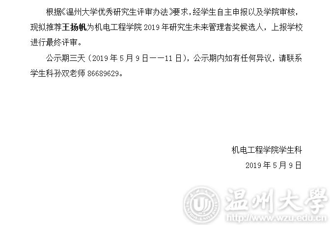 关于麻豆导航 2019年研究生未来管理者奖候选人评选结果公示
