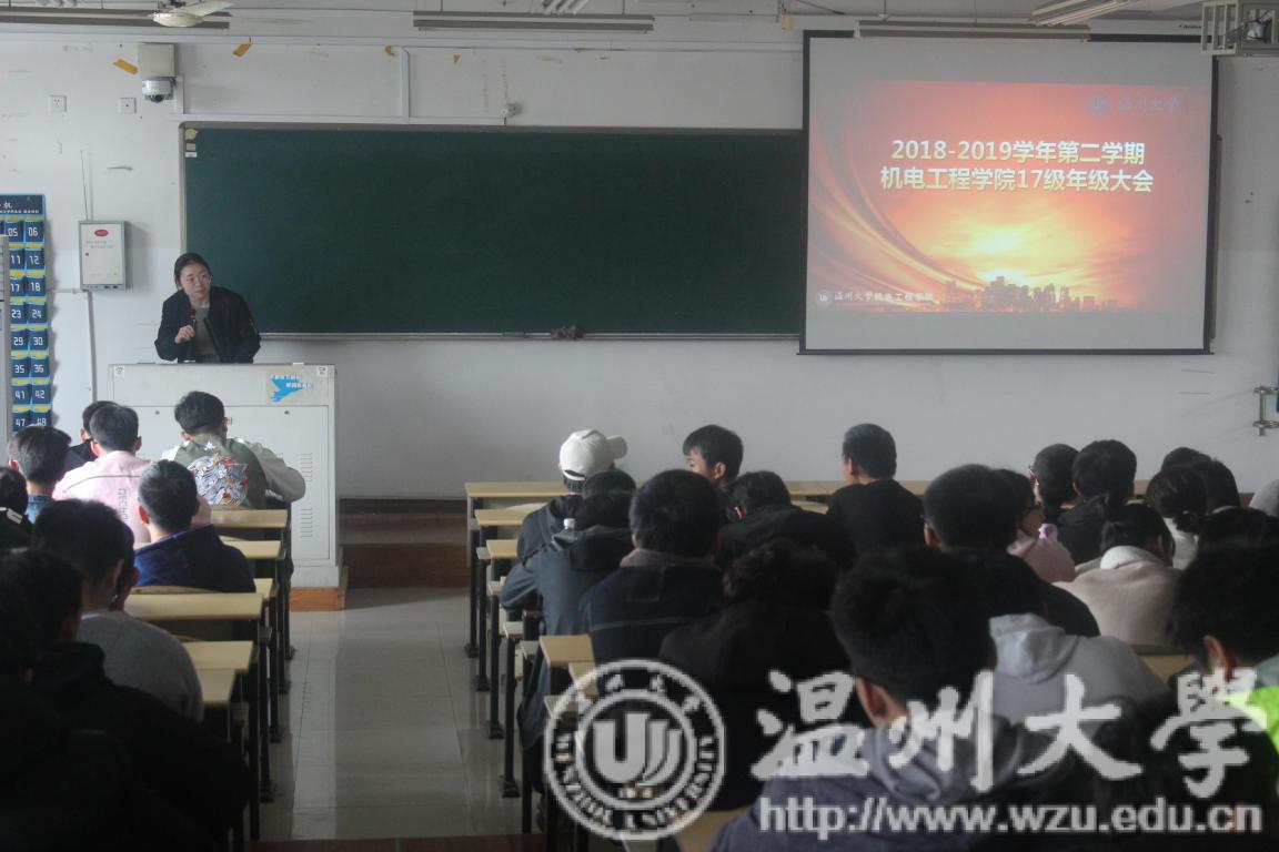 交流会结束后,学生科胡施施老师主持了17级年级大会。胡老师分析了各班上学期获得班集体荣誉、各班上学期期末考试、体质测试、四六级考试、各班晚自习、上课纪律等表现及问题,既肯定了17级同学在过去一个学期学风建设方面取得成绩也指出了还需改善的问题,并希望同学们予以重视。最后孙双老师强调同学们要积极进行锻炼,强健的体魄是学习的保障,号召同学们要以饱满热忱的精神迎接新学期。
