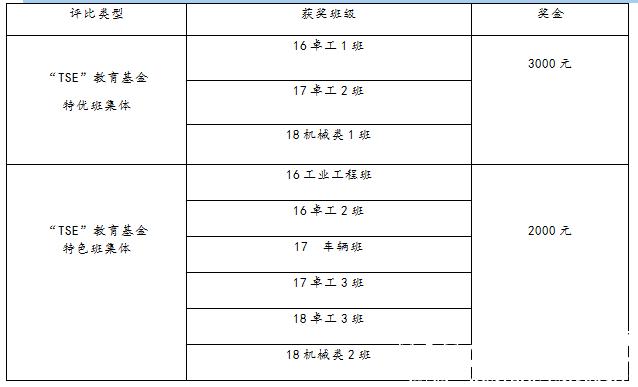 “TSE”教育基金由宁波兴茂电子科技有限公司出资设立,特别设置了特优班集体和特色班集体奖项。特优、特色班集体评比涉及学风建设、学生团建、科技竞赛、创新创业、考级考证、新闻宣传以及考研就业七个特色项目。经过前期各班申报、年级委员会初评、麻豆导航资格审核和麻豆导航联评大会,并由教师评委和学生评委投票,最终评选出16卓工1班、17卓工2班、18机械类1班3个特优班集体和16卓工2等6个特色班集体。名单如下: