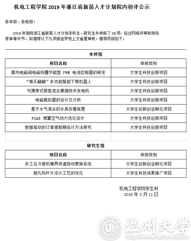 麻豆导航 2019年浙江省新苗人才计划院内初评公示