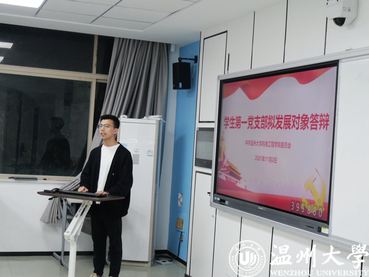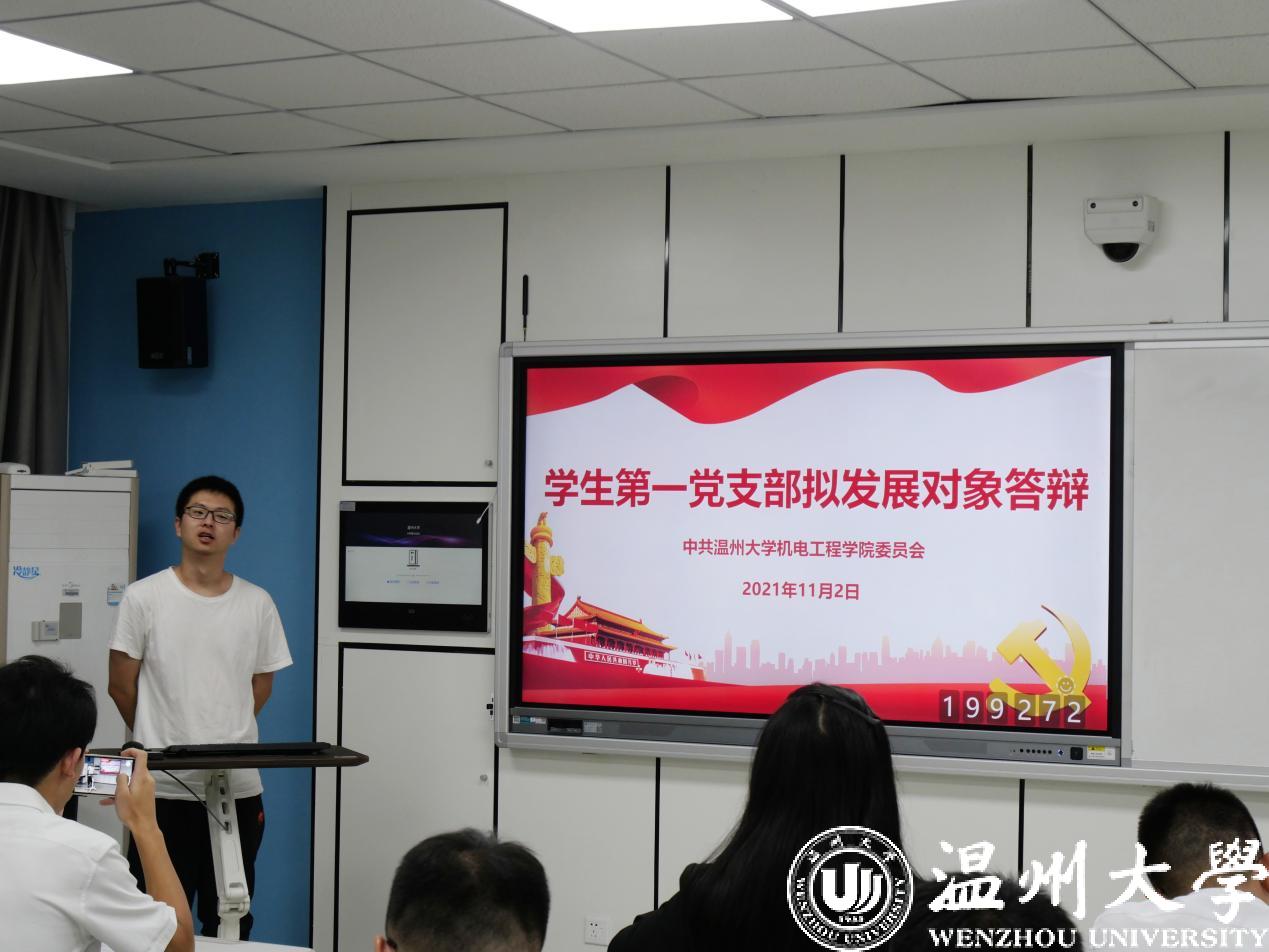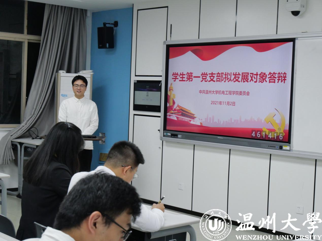 在本次答辩会上,学生第一党支部梁嘉伟、余成玘、林家豪、周洋光、周斌瑞、金鸿斌、徐湘喻、张越洋、周欲欣9位同学参与答辩;学生第二党支部苏智楠、张涛、郭治东、蔡嘉淇4位同学参与答辩;学生第三党支部朱莉、魏淳辉、张德楠、林慧、严潘铃、范雯慧、吴子豪、叶程鹏、王成鑫、陈曹宇、虞远航、曹高涵、戚建波、郏杨昊、王洪群、李佳明、余飞岑17位同学参与答辩。答辩人主要从对党的认识、入党动机、学业水平和参加实践等方面进行汇报。同时,支部党员对候选人进行党史党章,时事政治等的提问。