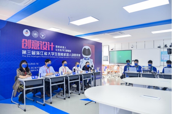 浙江省大学生智能机器人创意竞赛是由浙江省大学生科技竞赛委员会主办的A类竞赛,也是中国高校智能机器人创意大赛设立的首个省级竞赛。此届大赛由麻豆导航 、浙江大学联合承办,自2021年5月启动以来,就受到省内各大高校师生的广泛关注和热烈响应。最终,经过网上初评、决赛网评的层层选拔,109件作品进入决赛展示答辩环节。按照疫情防控的要求,本届决赛采用了“选手在线答辩、评委现场评审”的新形式。