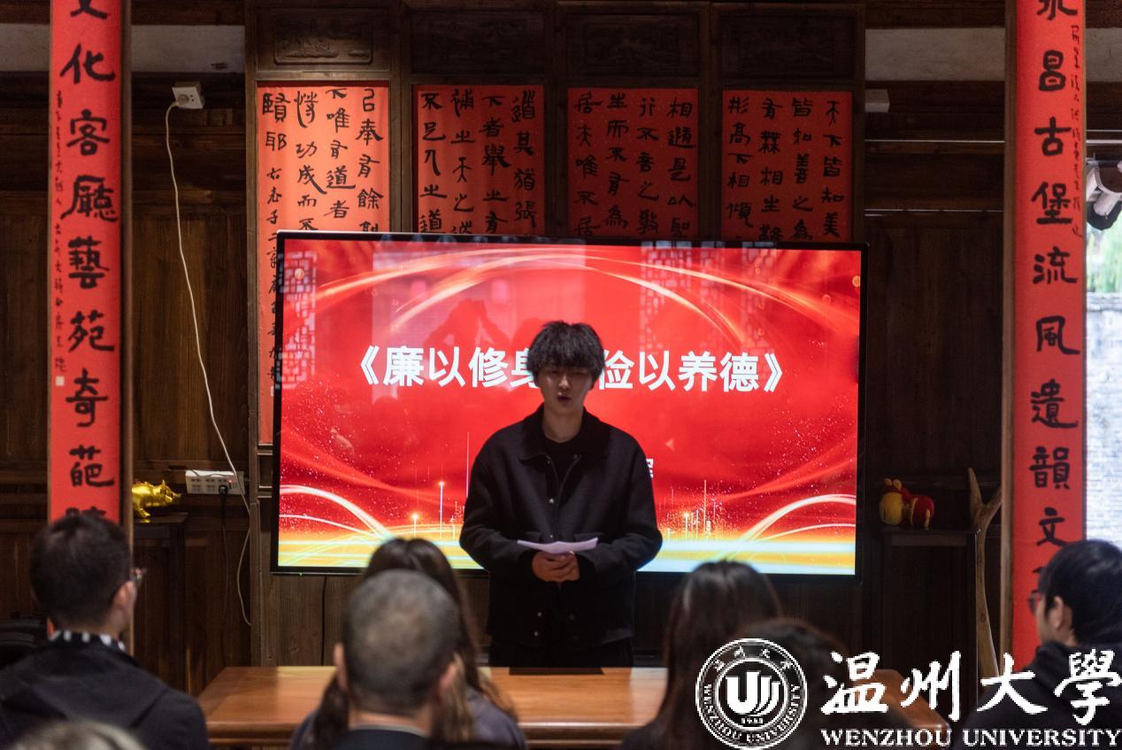 为深入学习贯彻十九届六中全会精神,继承和发扬党的光荣传统和优良作风,增强党的先进性和纯洁性建设,增强共产党人的政治本色,引导广大党员同志清清白白做人,干干净净做事,克己奉公,以俭修身。11月28日上午,我院组织师生党员前往我校廉政教育基地——龙湾永昌堡英桥王氏家训馆开展“学勤廉典型,扬清风正气”主题演讲比赛。