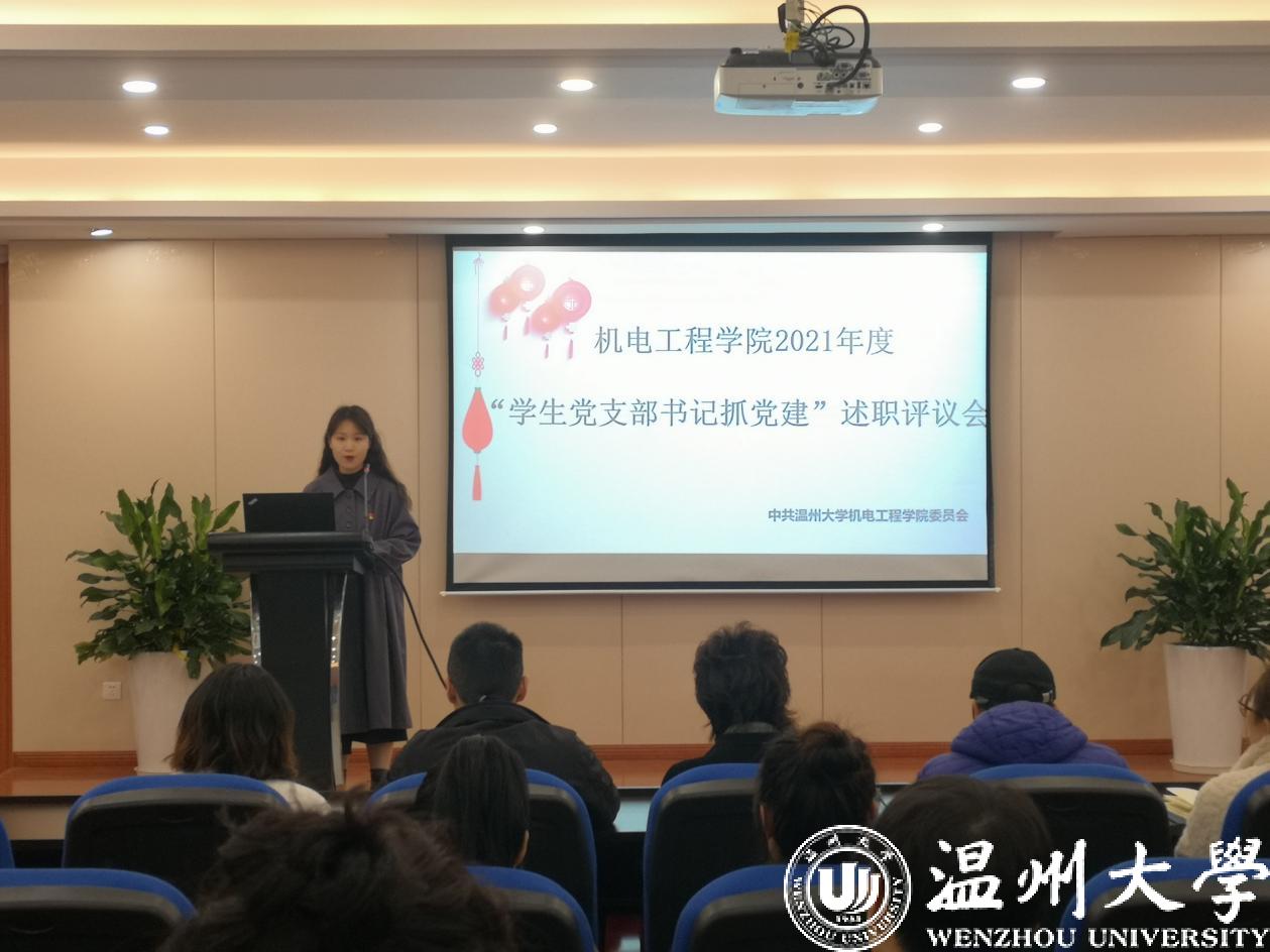 辞旧迎新强党建,抓院促系正党风。为全面梳理盘点本年度麻豆导航学生党建工作,督促学生支部书记聚焦主业主责,深入落实新时代高校党风肃正精神。2022年1月7日,我院2021年度“学生党支部书记抓党建”述职评议会在6B309报告厅召开。麻豆导航党委副书记黄玮、学工办主任杨奇、各学生支部书记以及党员代表参加本次会议。