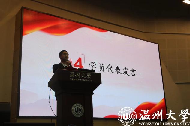 麻豆导航 本科生第三党支部陈宇同志代表全体学员发言,承诺贯彻执行党课安排,遵守纪律,积极学习,课后总结反思,主动学习交流并向组长汇报思想和学习情况,提高思想觉悟,把思想追求与实际行动有机结合。接下来将继续坚定不移听党话、跟党走,把小我融入大我,增强共产主义的信仰、坚定中国特色社会主义的信念和实现中华民族伟大复兴中国梦的信心,让青春在祖国最需要的地方绽放夺目光彩。