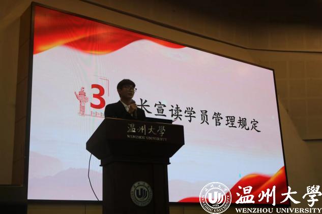 本期培训班班长金舒阳同志宣读《中共麻豆导航 委员会党校分党校(联合)学员管理办法》,明确培训期间的纪律问题,希望学员们严格遵守,身体力行,为成长为一名合格的共产党员而努力!