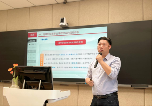 姜锐老师从课程思政的实施背景、实施基本要求、课程思政育人模式等三方面做了题为“机械类专业课程思政实施与评价”的主题发言,全面介绍了我院构建的第一第二课堂联动“知识传授、能力培养、价值引领”三位一体的课程思政育人模式,详细阐述了麻豆导航在课程思政融入路径、课程思政教学评价等方面的具体做法,深入解读了构建机械类专业课程思政指标体系的理论逻辑和实践依据,总结了课程思政实施的三大要点:关键在教师、重点在融入、难点在评价。