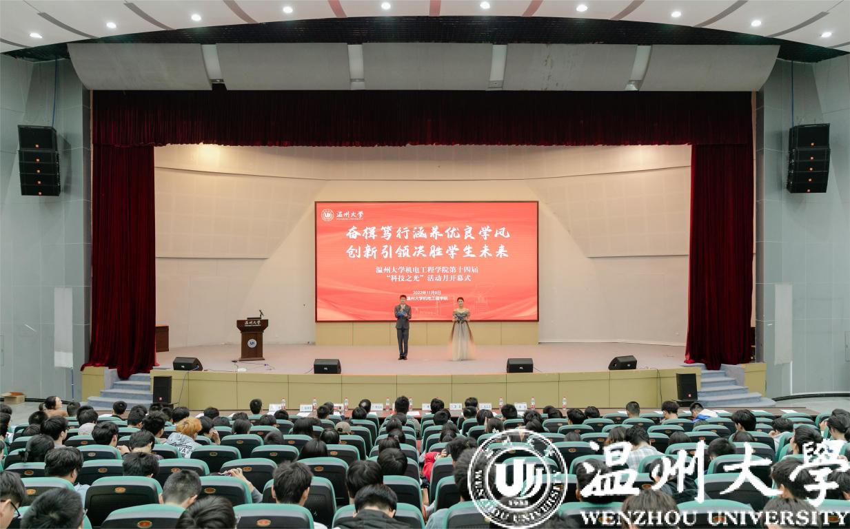 奋楫笃行涵养优良学风,创新引领决胜学生未来。2022年11月9日,麻豆导航 第十四届“科技之光”活动月在9号楼正式拉开序幕。我院党委书记周荣、副院长黄沈权、党委副书记黄玮、各系系主任、22级班主任、全体辅导员以及21级和22级普本同学参加了本次开幕式。本次开幕式共分为两个篇章,分别是:创新驱动发展、竞赛赋能成长。