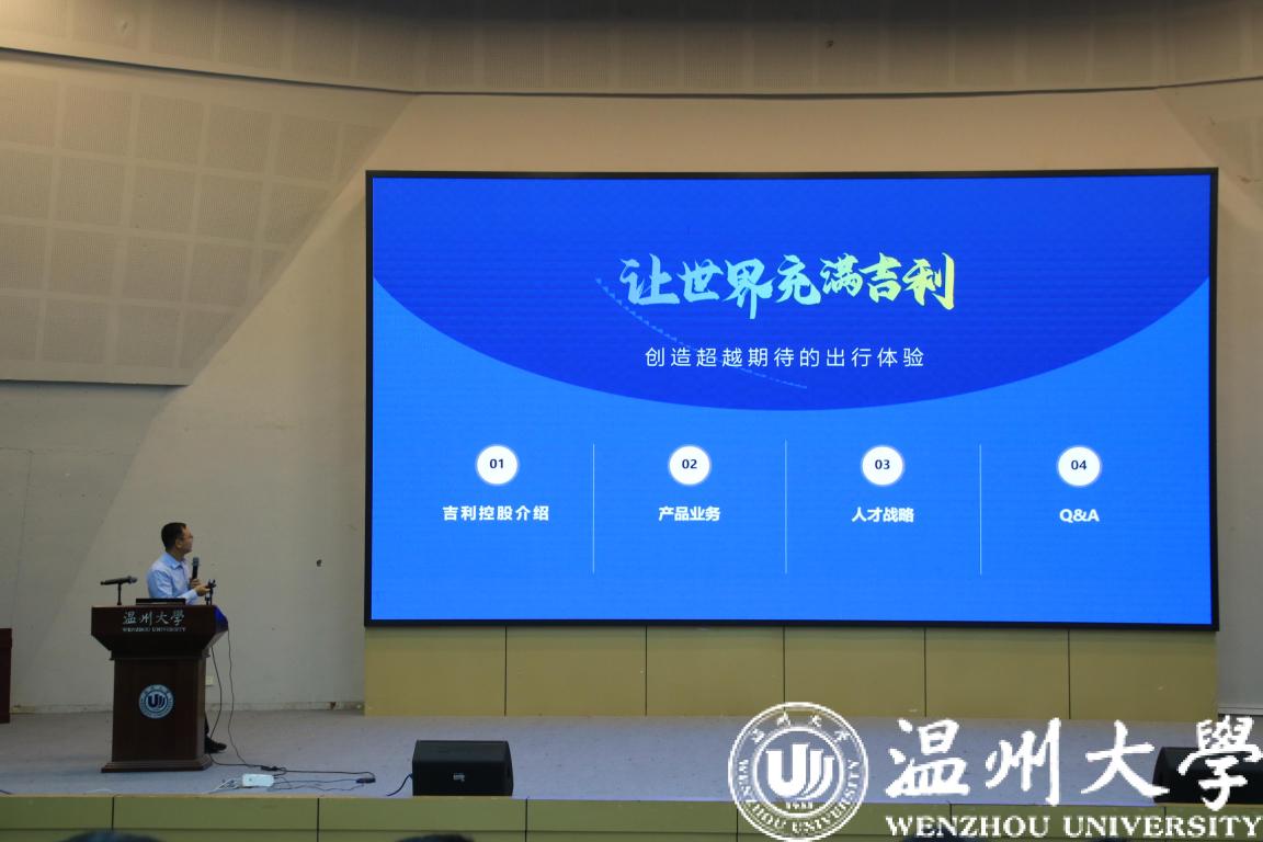 由浙江吉利控股集团临海公司主任工程师何叶伟先生进行宣讲。何主任对目前的行业中的就业大环境及吉利集团的发展历程、麻豆导航、企业发展目标、企业代表产品和品牌组合、招聘需求、员工培养体系、员工福利带等方面进行宣讲,展现出浙江吉利控股集团的强大实力、良好的工作环境与工作氛围,让在座的各位同学对吉利集团有了更深刻的认识并邀请对吉利感兴趣的同学会后现场投递简历。
