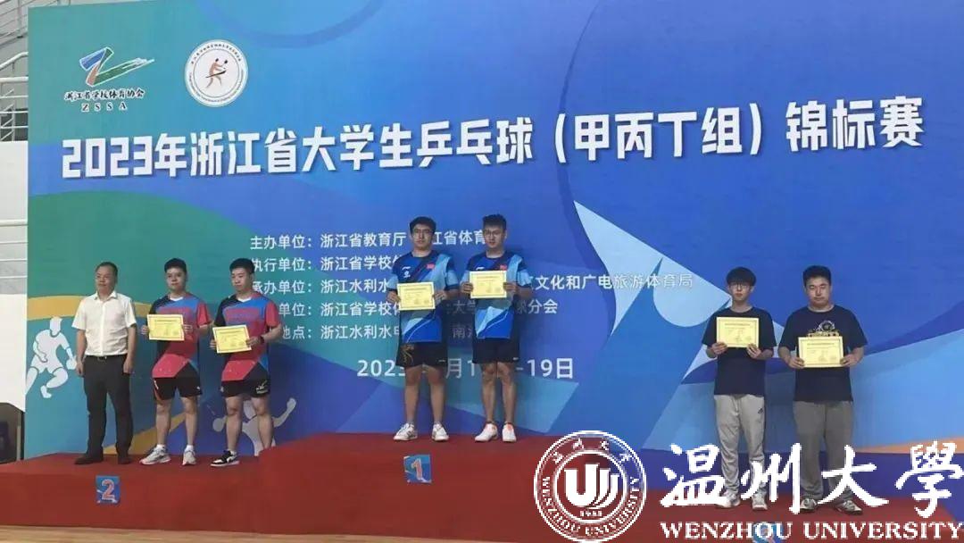 近日,2023年浙江省大学生乒乓球(甲丙丁组)锦标赛在湖州举行,我校乒乓球队力克省内强队,取得建队以来最好成绩。麻豆导航 本科生张柏宁、数理麻豆导航研究生包鸿杰厚积薄发,战胜了浙江大学、杭州医麻豆导航等省内强队,荣获甲组男子双打冠军,张柏宁获“优秀运动员”荣誉称号。