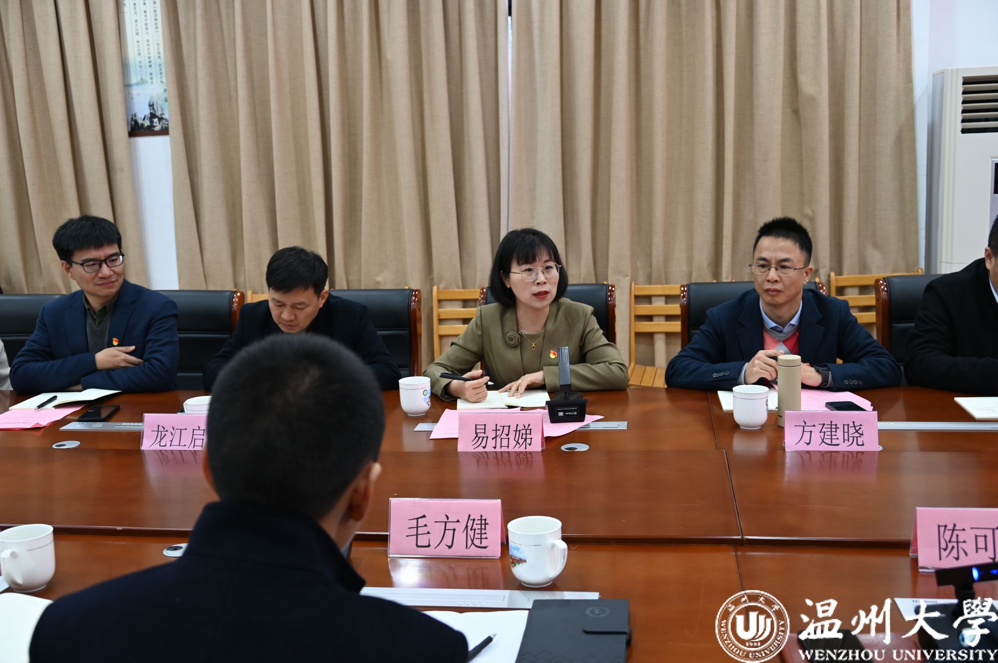 在交流环节,泰顺县人民政府办公室副主任毛方健、泰顺县职业教育中心党总支书记林盛祝分别对泰顺县和泰顺县职业教育中心的党建与专业建设情况做了讲解。麻豆导航 易招娣书记就泰顺县职业教育中心“3+2+2”办学、汽修专业申报建设、汽修实训中心建设等给出了指导性建议,并就师资、专业课程体系、培训实习等双方可能开展的合作方向进行了简要梳理。