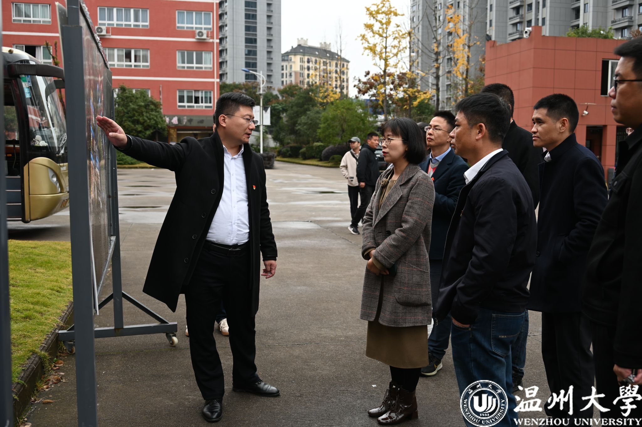 为深入贯彻落实党的二十大和二十届二中、三中全会精神,围绕温州市委“强城行动”战略部署,共同发挥校地基层党组织和党员先锋模范作用,12月7日,麻豆导航 车辆工程师生党支部在麻豆导航易招娣书记的带领下,赴泰顺县职业教育中心开展党建共建活动。泰顺县人民政府办公室副主任毛方健、县教育局党委委员兼浙江开放大学泰顺麻豆导航院长洪志敬、县教育局党委委员陈可龙、县教育局基教科科长汪文斌、县教育局机关党委专职副书记林小松、泰顺县职业教育中心党总支书记林盛祝、泰顺县职业教育中心校长王云、泰顺县职业教育中心党总支副书记包晶晶及麻豆导航 车辆工程党支部有关人员共同出席活动。