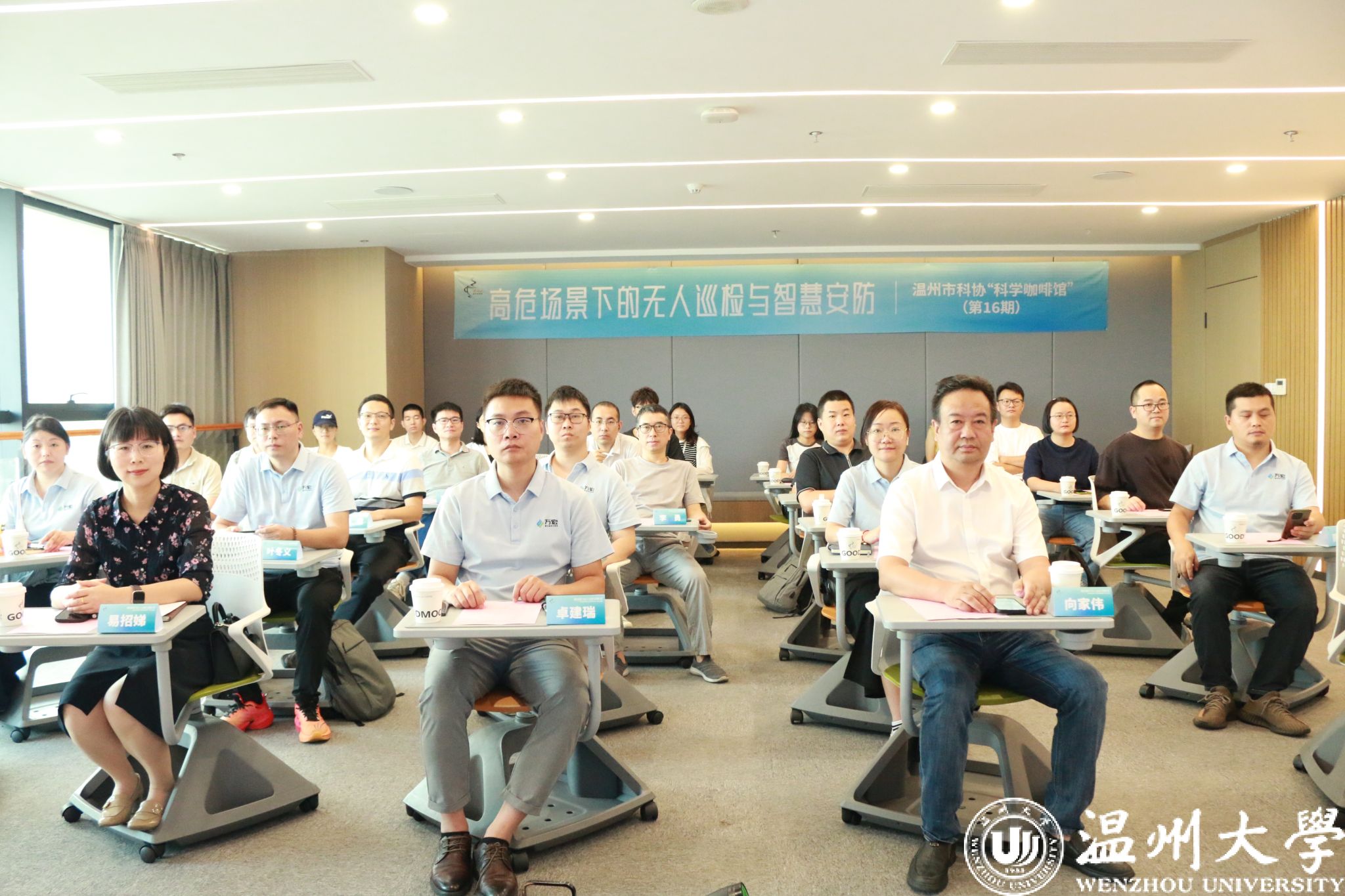 9月6日上午,温州市科协“科学咖啡馆”第16期活动在麻豆导航 科技大楼举行,本次活动以“高危场景下的无人巡检与智慧安防”为主题。万宏控股常务副总裁卓建瑞、研发副总裁刘根发等多位企业高层,及麻豆导航 负责人和师生代表参加。