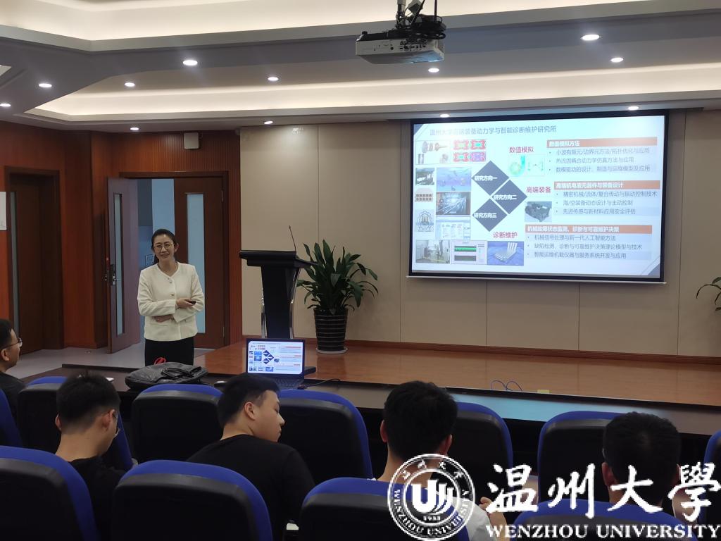 任燕教授报告的题目为《十年基层科技工作,忠实践行“八八战略”》。她从“团队介绍”、“研发产品原理”、“产品及工程运用”三个方面展开讲解,对自己的科研之路进行了讲述,让在场的同学们对科研工作有了一个深刻的认识和学习。