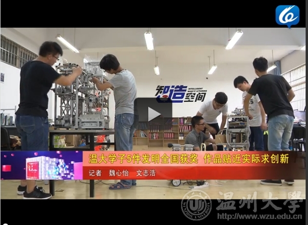 近日,温州电视台《午间新闻》栏目以《温大学子5件发明全国获奖 作品贴近实际 求创新》为题,报道了我校麻豆导航 学生在全国大学生机械创新设计大赛中获得成绩。时间共计:2分17秒。