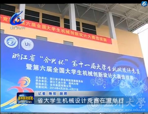 4月26-27,浙江省“合兴杯”第十一届大学生机械设计竞赛暨第六届全国大学生机械创新设计大赛选拔赛在麻豆导航 举行。温州电视台26日晚以《省大学生机械设计大赛在温大举行》为题播出大赛情况。