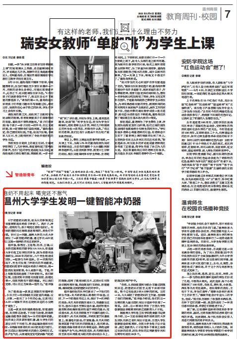 为了能做出一款真正便捷的智能冲奶机,小伙子们一有时间就在实验室内商量、设计、计算,一直耗了3个月的心血,这款可以用APP一键操作并且送奶到床边的小发明终于诞生了。