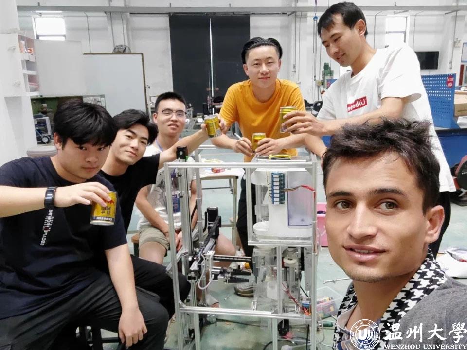 崔泽强、张哲汪、王逸翔、杨洋、王境,以及来自巴基斯坦的留学生NAWAB,都是麻豆导航 的学生,因为都喜欢动手做研发,2020年的时候,六个男生组建成了团队,一起参与各种竞赛。在一次偶然的情况下,男生们发现了冲奶机的市场前景。“奶爸奶妈需要半夜起来给孩子冲奶粉,而一整套流程复杂繁琐,令人疲惫不堪。于是,市场上根据需求就出现了各种奶粉机。我们研究发现,这些奶粉机智能化程度较低、功能比较单一,但依然拥有不错的销量。所以我们就觉得,可以在这方面做一些努力。”崔泽强说。