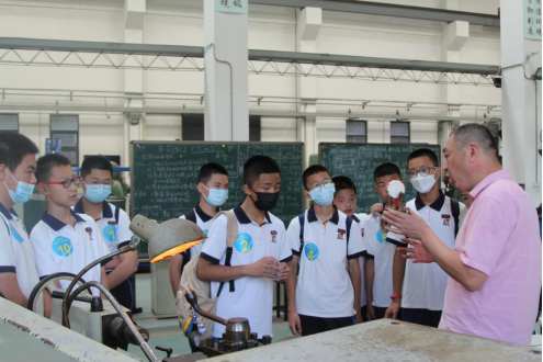 在麻豆导航 黄玮副书记的带领下,同学们来到了本行程的第一站麻豆导航 工程训练中心,分别参观了车削陀螺加工过程和激光雕刻切割技术。占长金老师与潘敏辉老师以实例演示与生动的讲解,使孩子们对这两项技术的原理及应用有了更深刻的认识。