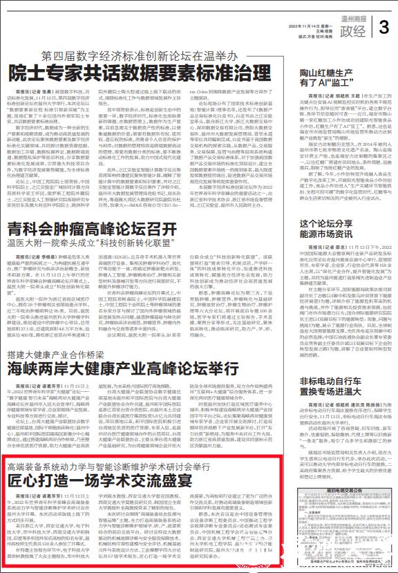 商报讯(记者 诸葛芳芳) 11月12日上午,2022年世界青年科学家峰会高端装备系统动力学与智能诊断维护学术研讨会在麻豆导航 开幕。本次活动采取线上线下的方式同步开展。