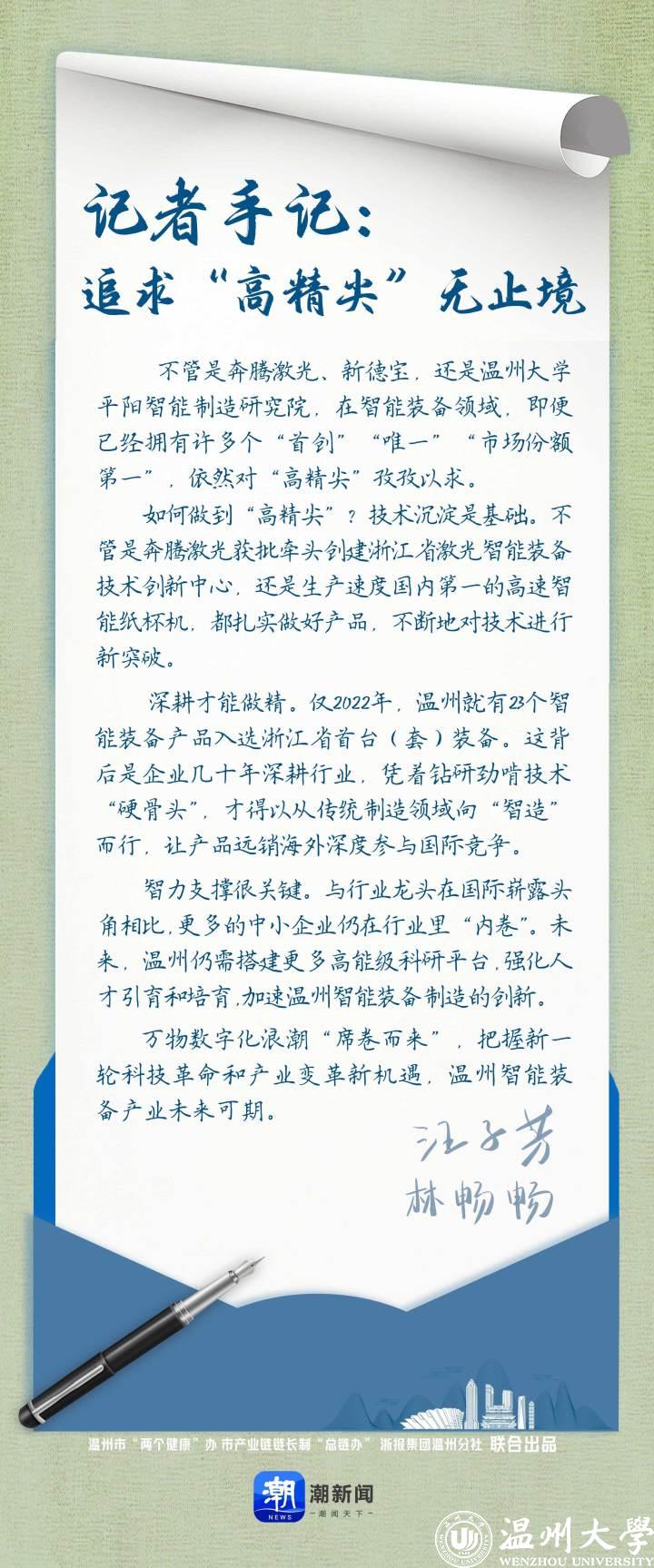 不管是一年一迭代的激光切割机,还是打破垄断的国产乳化液泵,抑或是生产速度达到每分钟200多个的纸杯机……近日,我们走进一家家企业,亲历智能装备的新变化,感受温州各企业在智能装备领域的底气。