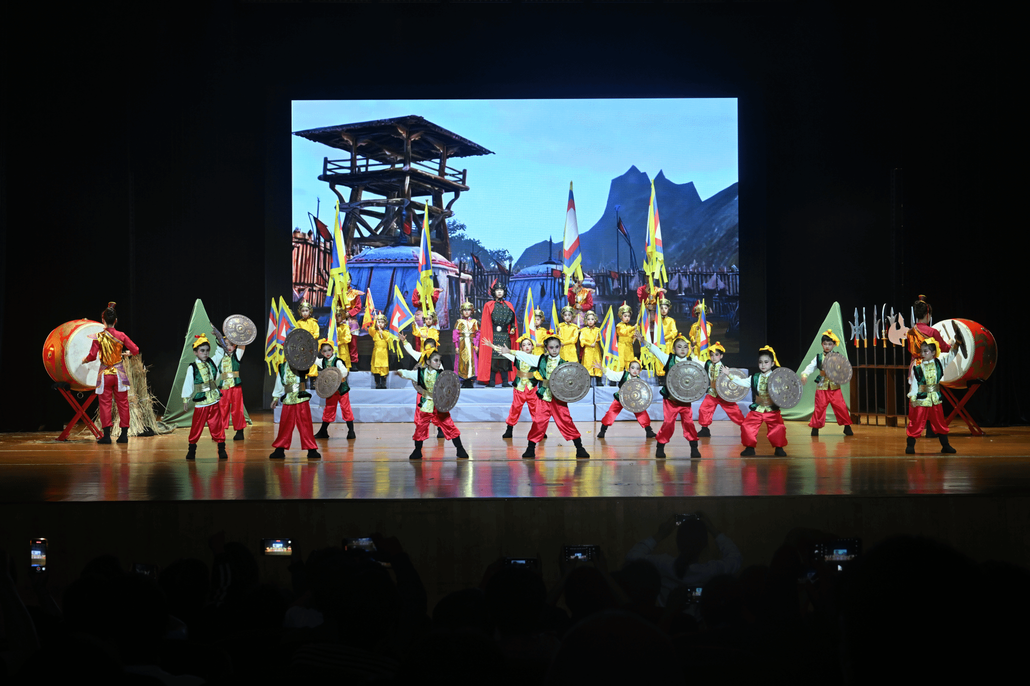 当天茶山实验中学正在开展第二十四届校园文化艺术节文艺汇演,温大外院学子为孩子们带去了红色经典片段《红岩Red Crag》和创意英文短剧《我不是祥子I'm not Xiangzi》。《红岩》作为中国现代文学的经典之作,在戏剧版中展现出更为深刻的情感和冲击力,引发了孩子们对个人价值观念的深入思考。在英文版的演绎中,江姐的形象更加饱满生动,她的坚定与勇敢通过英文台词流畅地传达给了孩子们。这一演出不仅是对江姐这一英雄人物的致敬,更是对那个动荡时代的反思和对自由、正义的向往。《我不是祥子》则在舞台上呈现了一场跨时空的穿越剧,用英文讲述了一个关于骆驼祥子的全新故事。探索独立与自由的主题,展现了对经典文学的现代解读和文化内涵的深挖,不仅拓宽了孩子们的国际视野,更加强了不同文化之间的交流与理解。