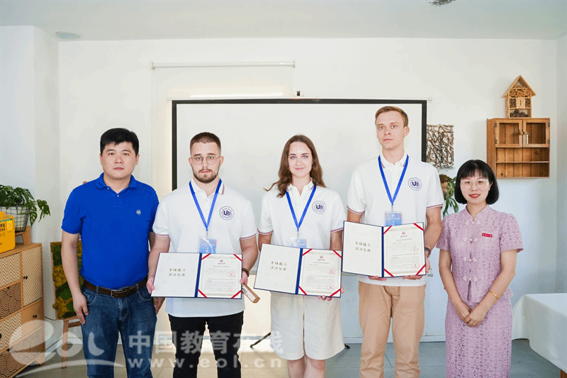 随后,温州市国际传播中心负责人郑国健与学校国际处副处长熊勇等共同为9名俄罗斯青年学生颁发了"中俄文化交流友好使者"聘书。在文艺展演环节,我校学子表演了琵琶二重奏《送我一支玫瑰花》,合唱歌曲《知否知否》;俄罗斯青年表演了茶艺舞台短剧,演唱了经典歌曲《喀秋莎》;并且两国青年合唱了《Lemon Tree》,歌声中充满了友谊与合作的美好情感。