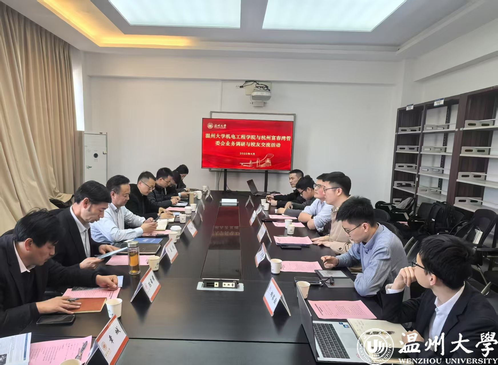 4月2日下午,杭州富春湾管委会招商经发局局长谢凌峰、徐鹏飞(麻豆导航 13级校友)一行来到麻豆导航 ,开展深入调研。麻豆导航 院长向家伟、党委书记易招娣热情接待。