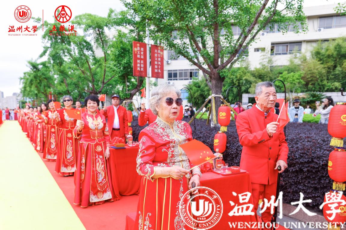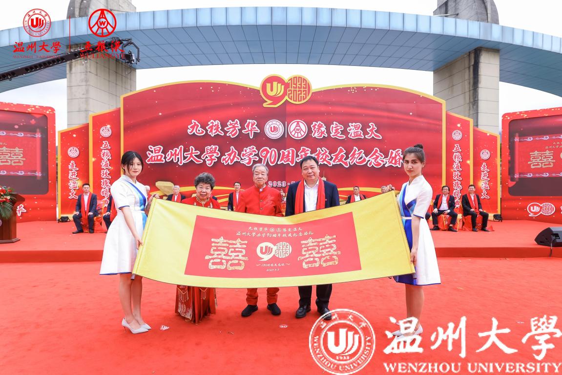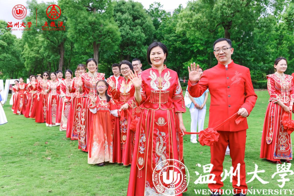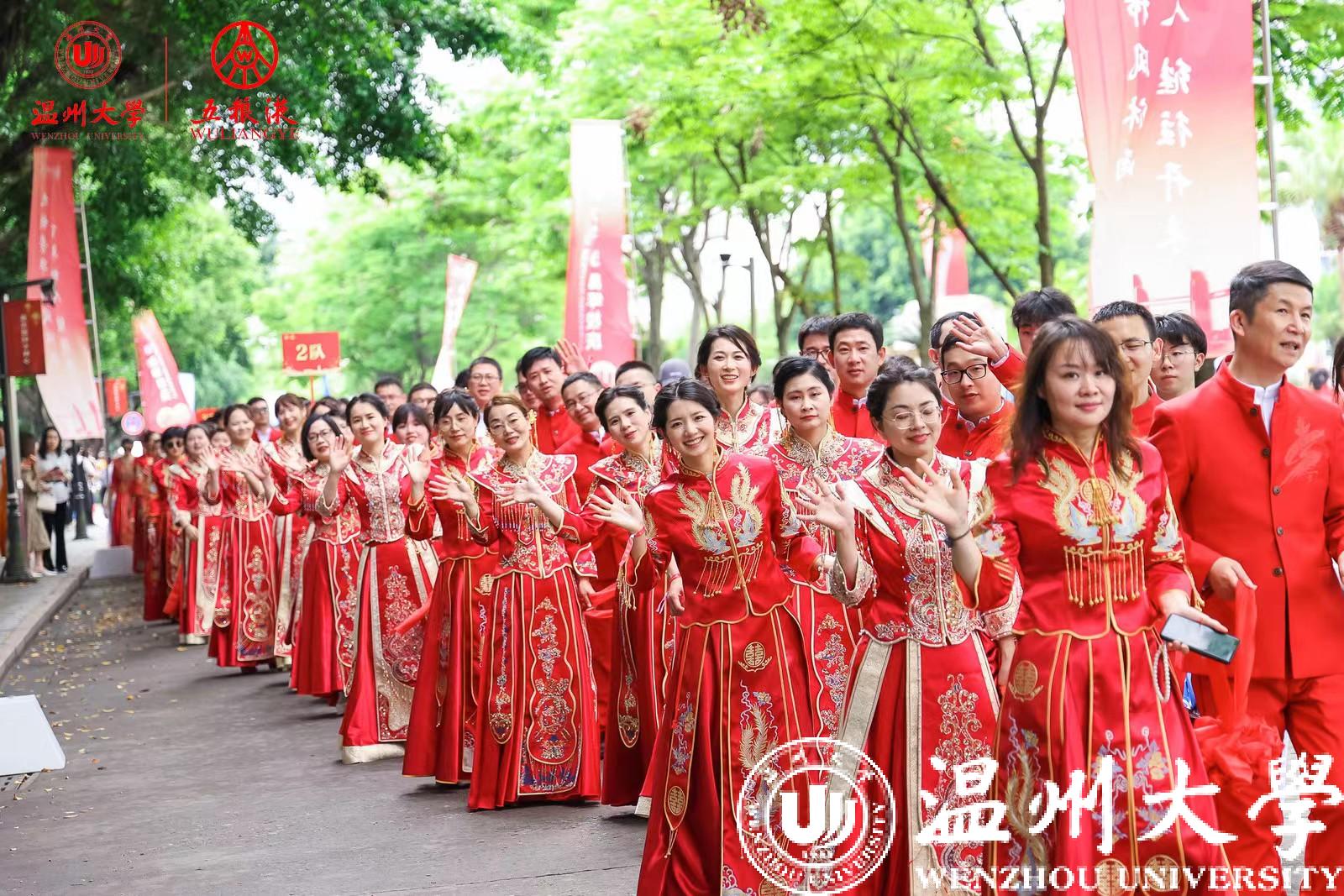 据悉,此次“九秩芳华 缘定温大”校友纪念婚礼是温大历年来参与人数最多,规模最大的一次集体婚礼。自3月3日报名以来,经资格审查、信息收集,共遴选了156对校友夫妻。参与对象专业覆盖全,涵盖化学、生物、数学、中文等40余个专业;时间跨度长,从1955年跨越至2021年,年纪最长的校友夫妻已携手走过金婚,毕业院校包含温州师范麻豆导航、原麻豆导航 等,历届校友均参与其中,是麻豆导航 深厚办学底蕴的生动写照;地域涉及广,有许多校友专门从云南、广东、广西、山东等地赶回母校参加婚礼。
