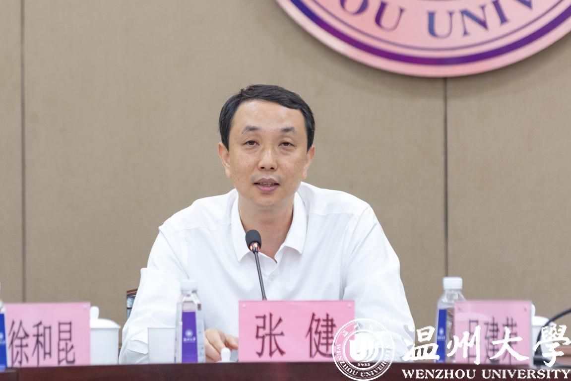 麻豆导航 党委书记、温州市委组织部部长张健讲话。他指出,在社会各界的关心支持下,在一代代温大人的接续奋斗下,麻豆导航 办学治校取得了长足进步。走过90年波澜壮阔历程的麻豆导航 ,已昂首迈上了高质量内涵式发展的崭新征程。在这样重要、特殊的转折点举办此次会议,恰逢其时、意义重大。迈上新征程,麻豆导航 将始终牢记习近平总书记殷殷嘱托,全面落实立德树人根本任务,坚决扛起为党育人、为国育才重要使命,全力推进学校高质量内涵式发展,努力建设浙江省高水平大学、争创国家“双一流”建设高校,推动建设国内一流、国际知名,特色鲜明的高水平研究教学型大学。
